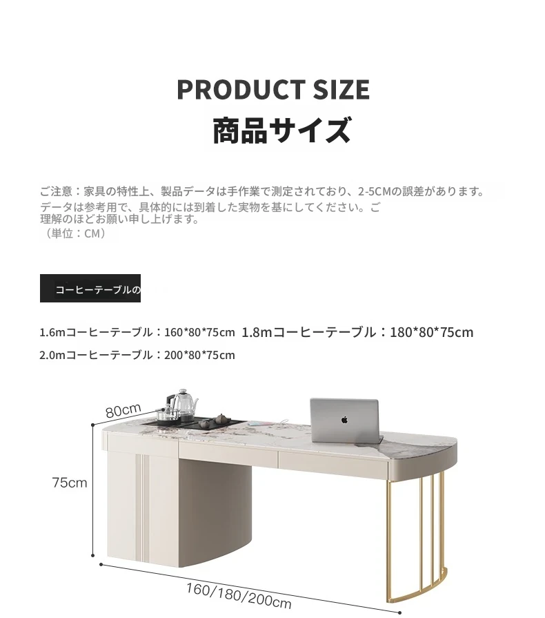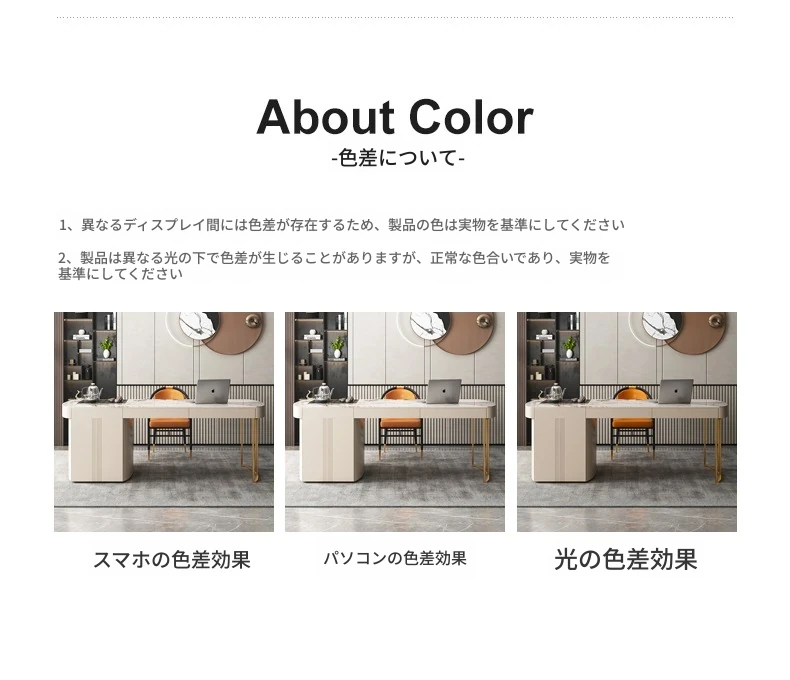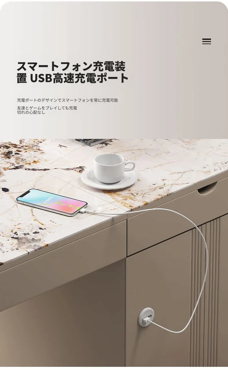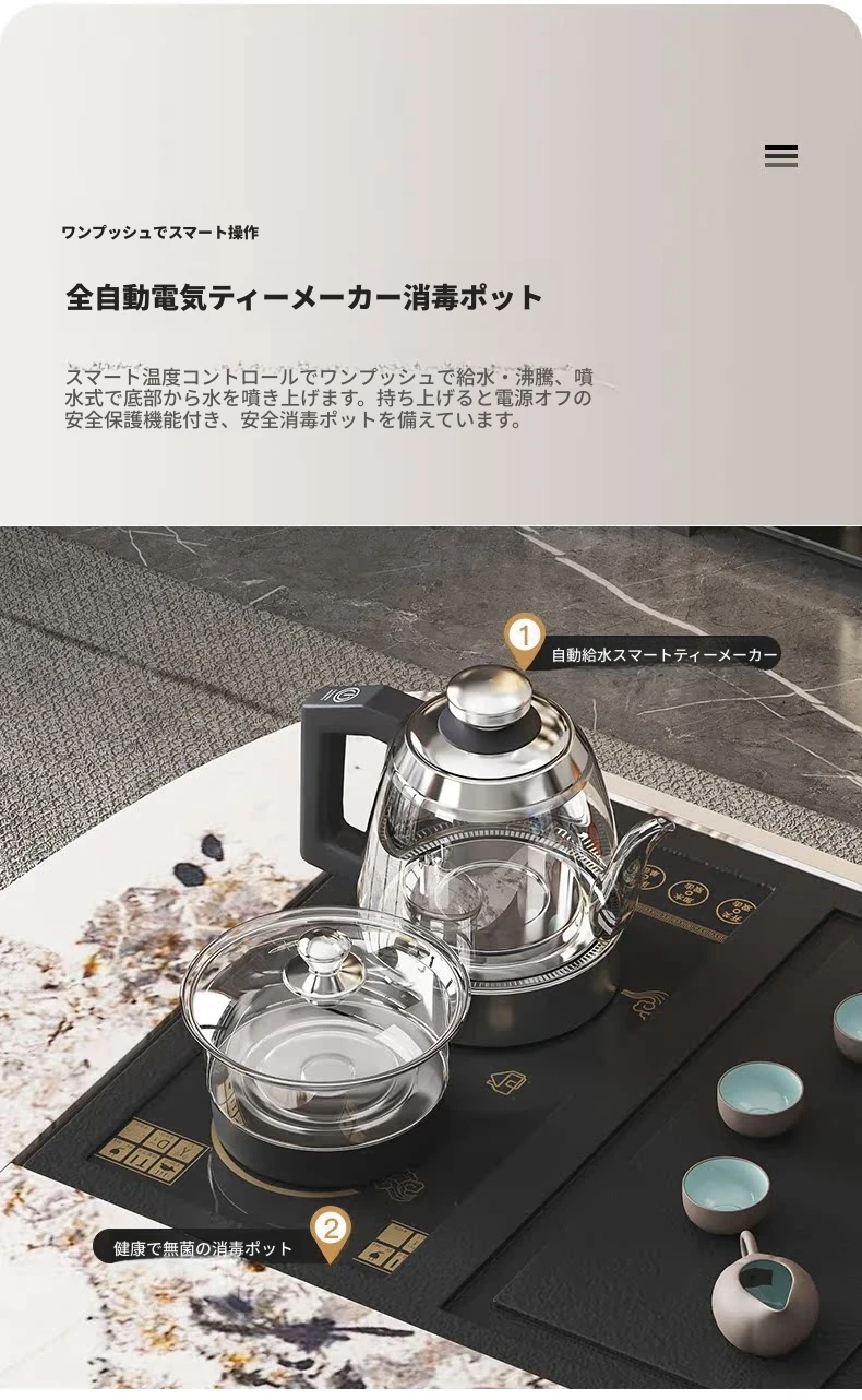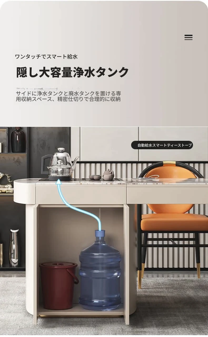 モダンシンプルなオフィスデスク&チェアセット:昇降式ティーテーブルにも対応!軽高級感溢れる岩盤仕上げの一体型ティーテーブル×デスクで、洗練されたワークスペースを。