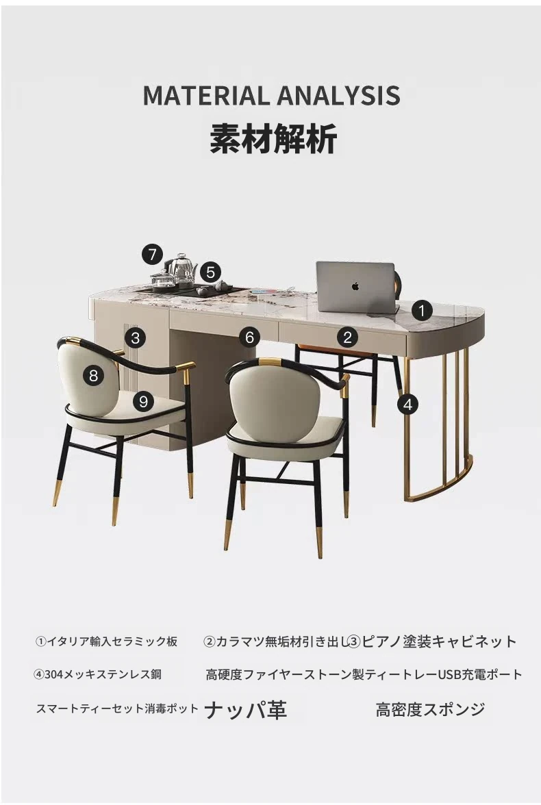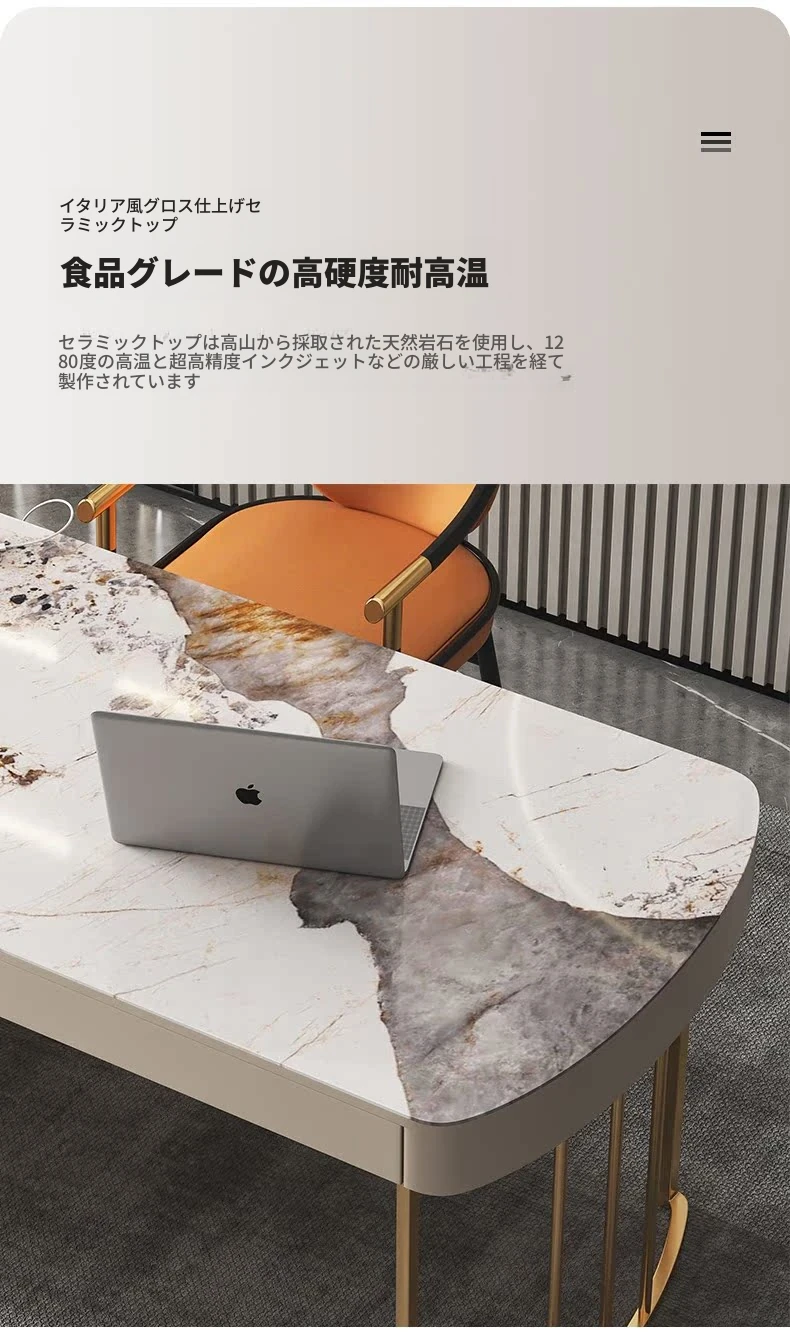 【1.8メートル】輸入光沢岩板+主チェア*1+ゲストチェア*2