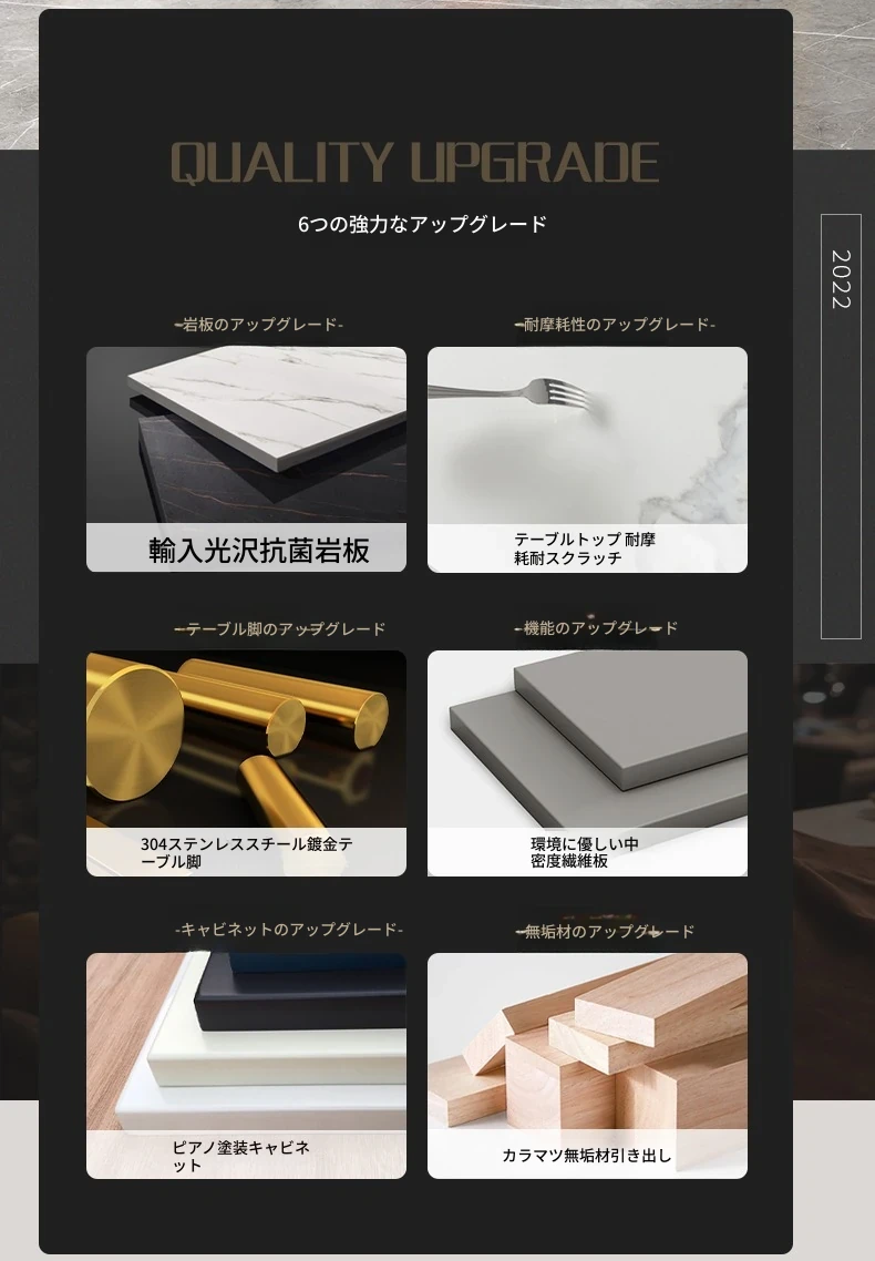 【1.8メートル】輸入光沢岩板+主チェア*1