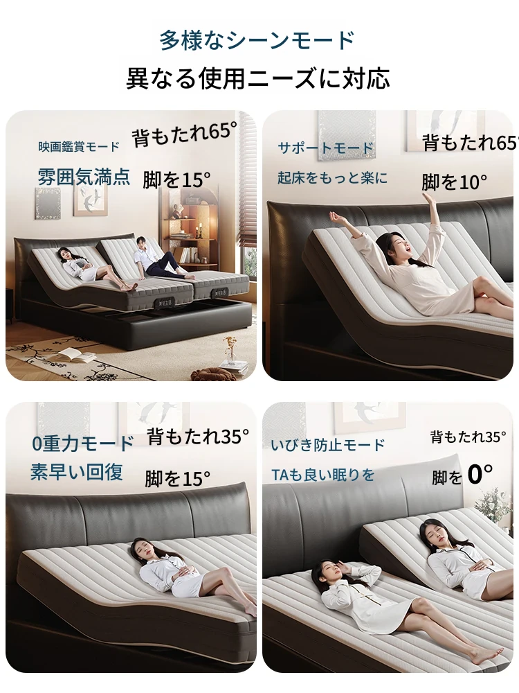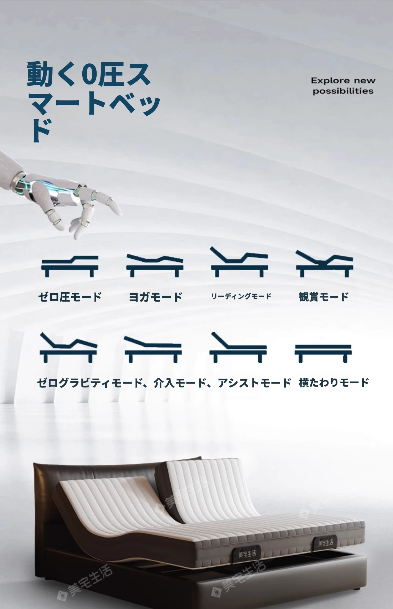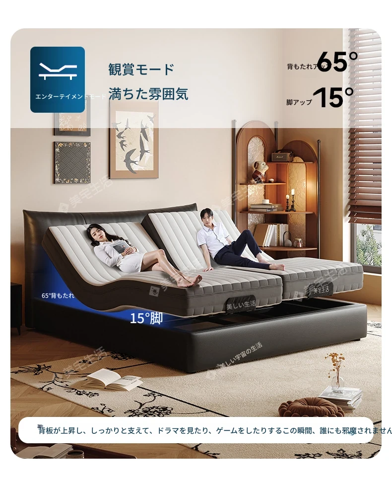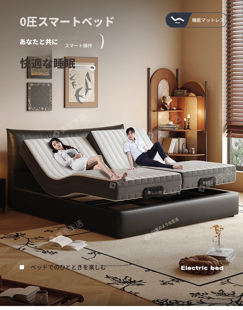 スマート電動ベッド 自動マッサージ機能付き 1.8m ダブルサイズ ブラックテクノロジー 家庭用昇降ベッド - 快適な睡眠とリラックスを実現する美宅生活の新しいスタイル!