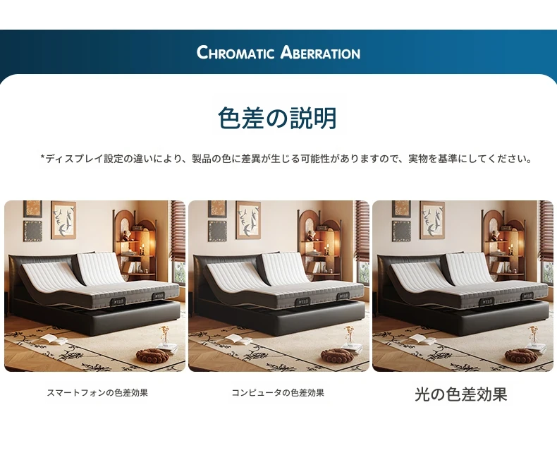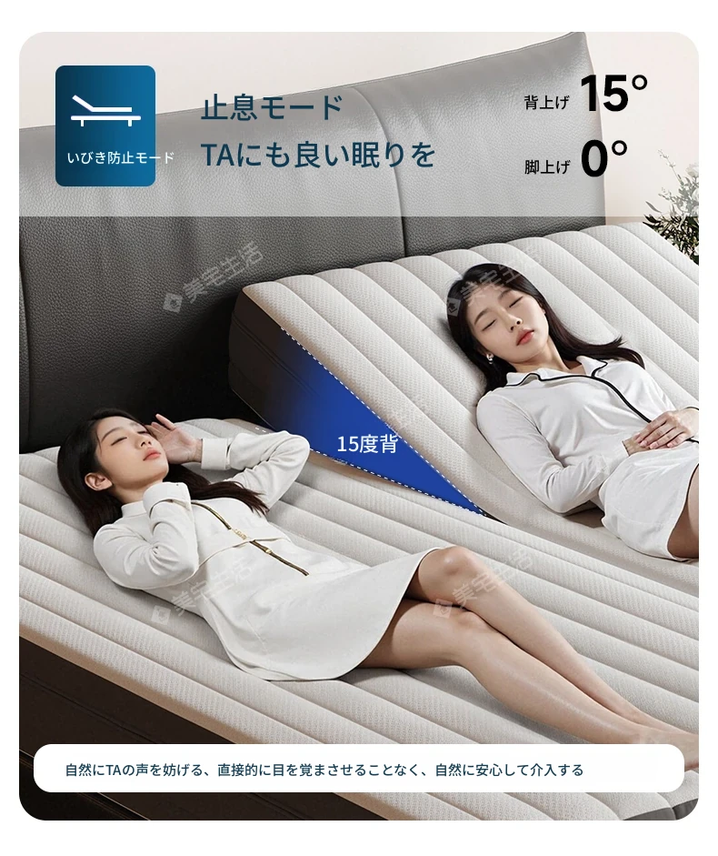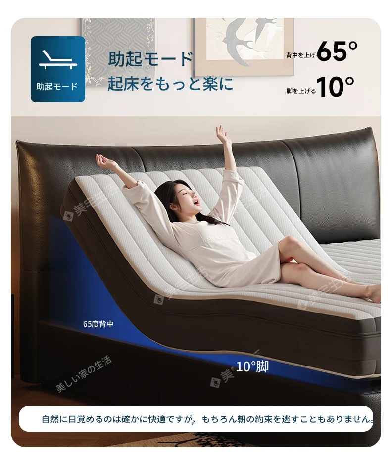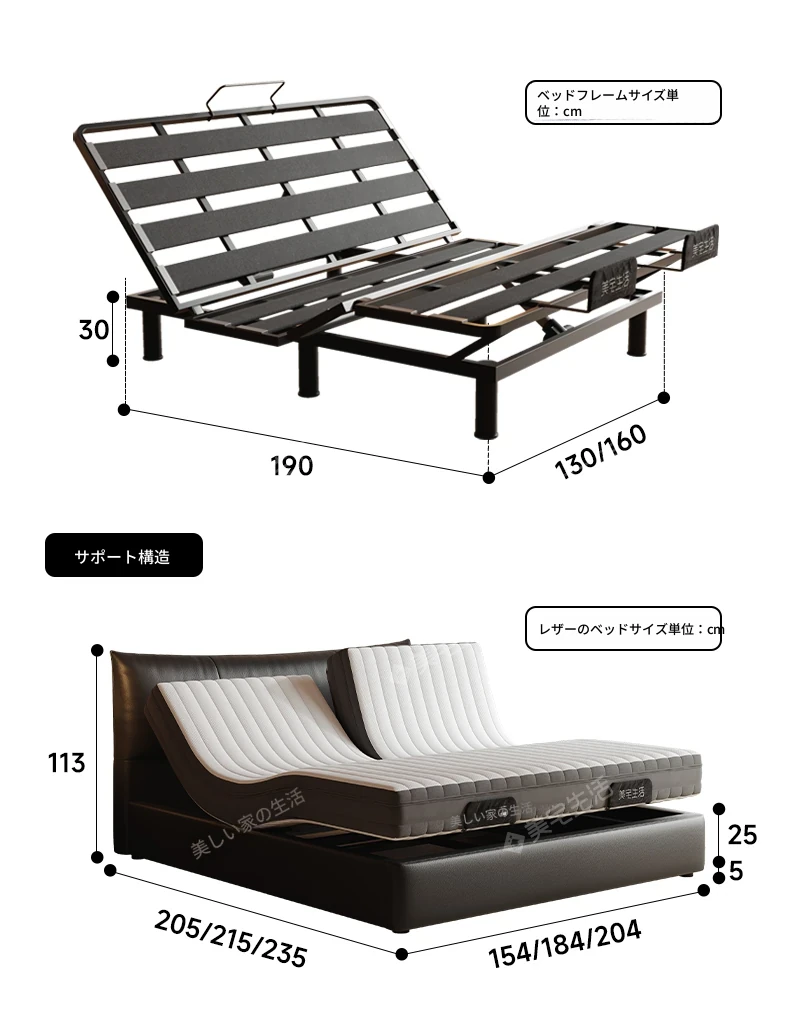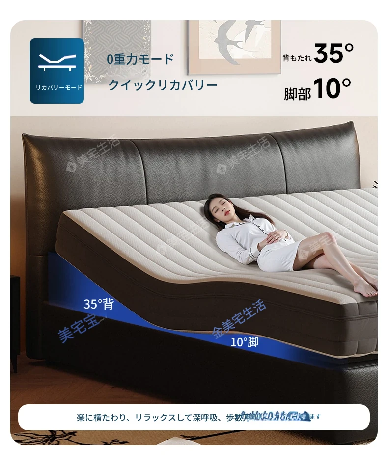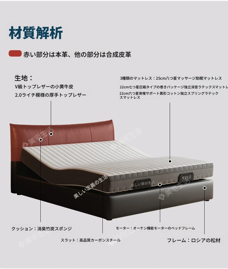V+級輸入2.0厚手トップレイヤー光沢牛革【ドイツOKIN三重モーター】半分体ベッドフレーム+八つ星マッサージ助眠マットレス