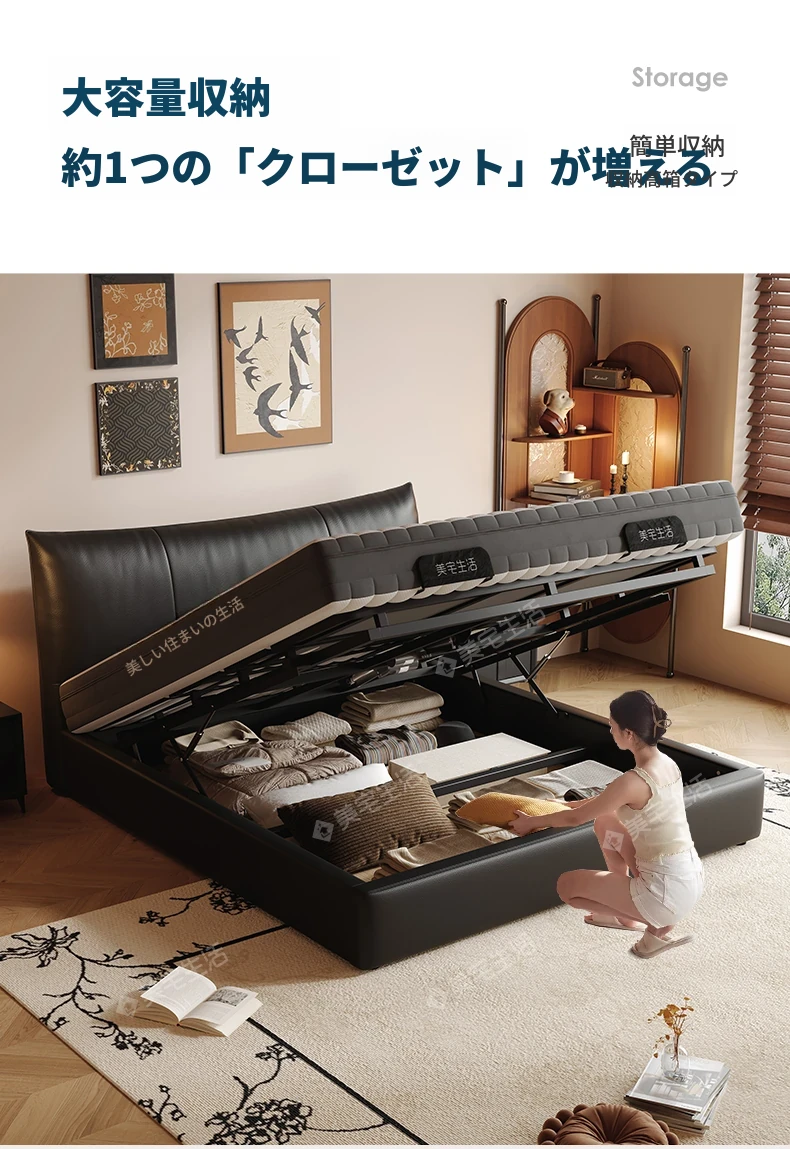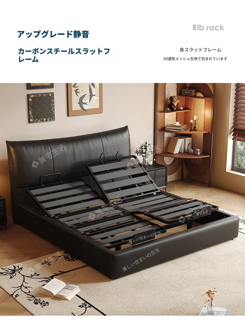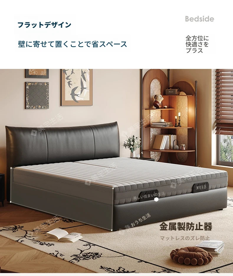 V+級輸入2.0厚手トップレイヤー光沢牛革【ドイツOKIN三重モーター】半分体ベッドフレーム+七つ星圧縮タイプロールパッケージ独立消音ラテックスマットレス