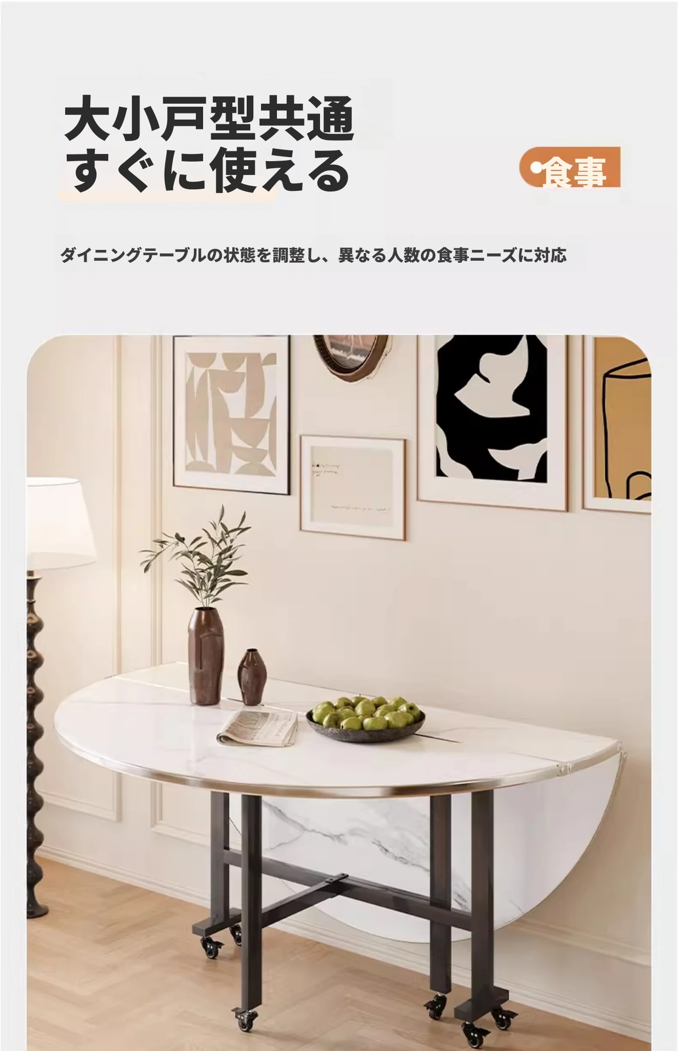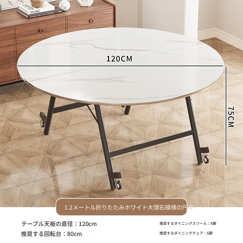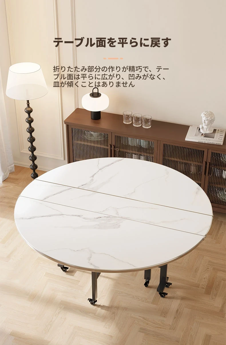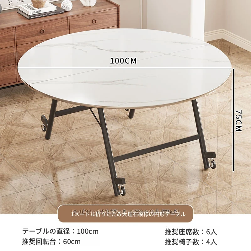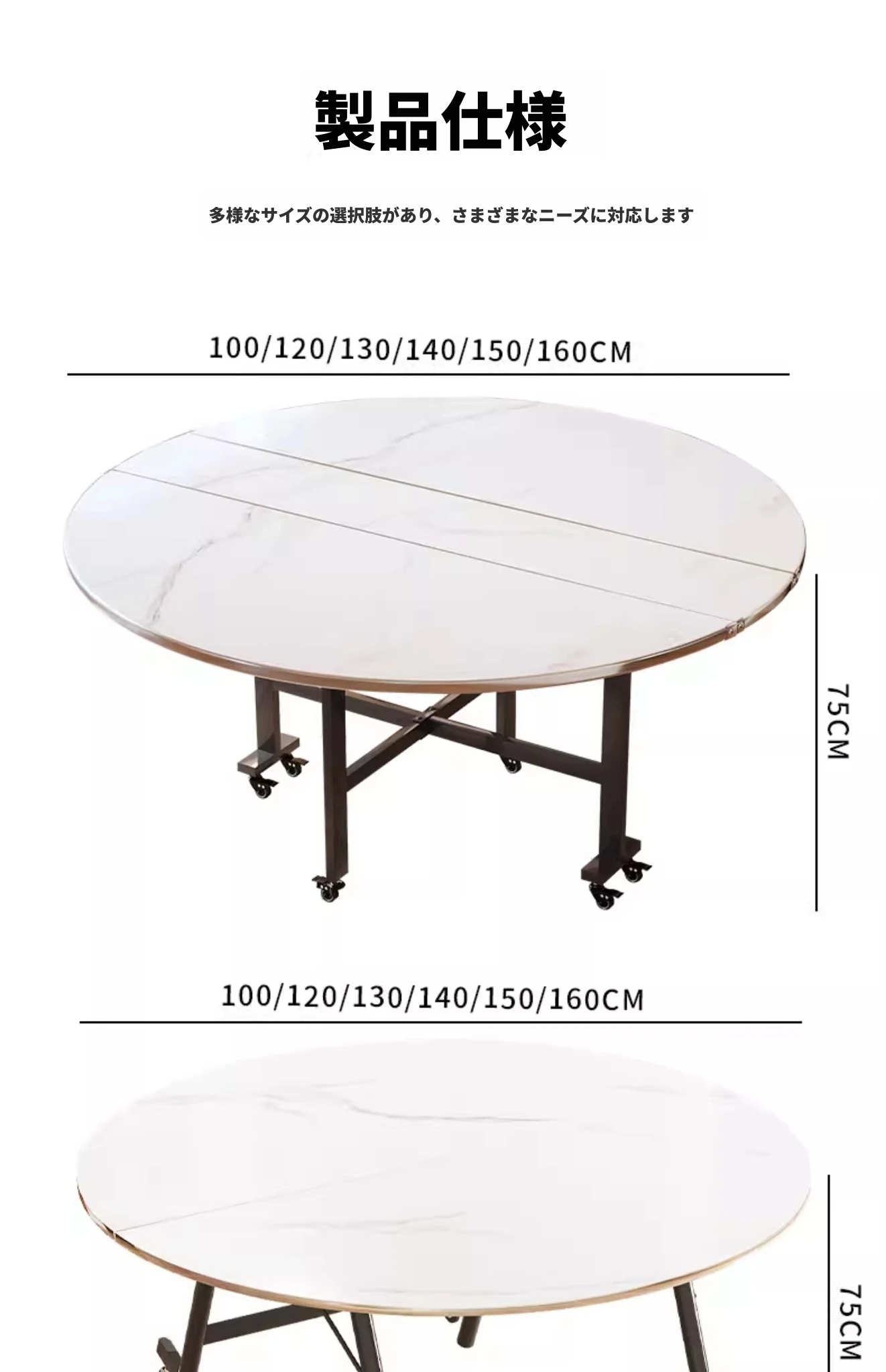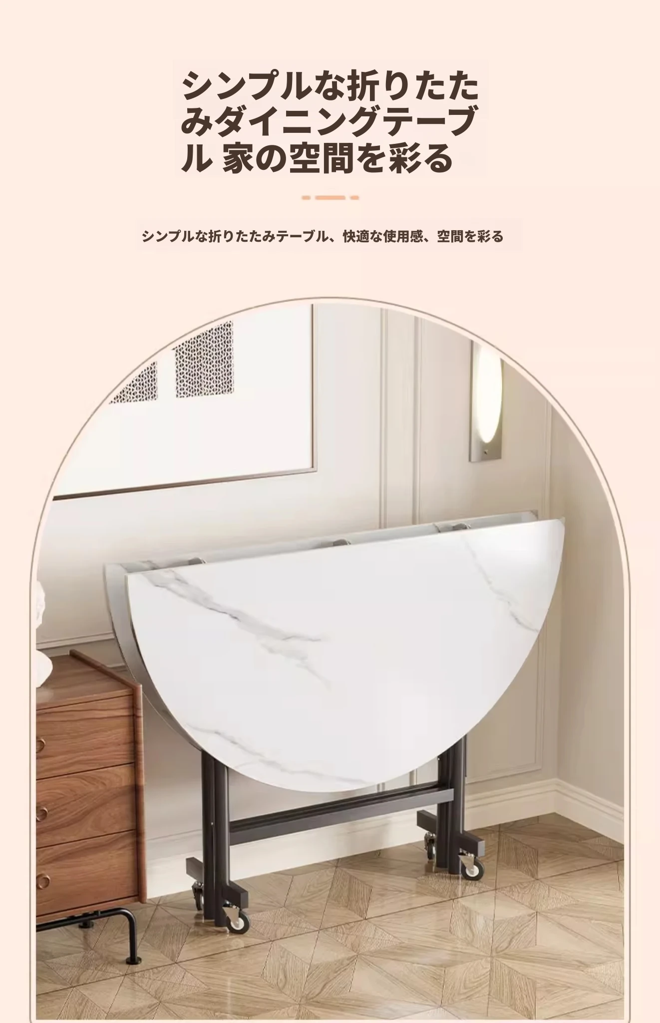 折りたたみ式円形テーブル|省スペース・小型家庭向け|ステンレスエッジ付き・移動可能な折りたたみダイニングテーブル|あなたの生活空間をもっと快適に!