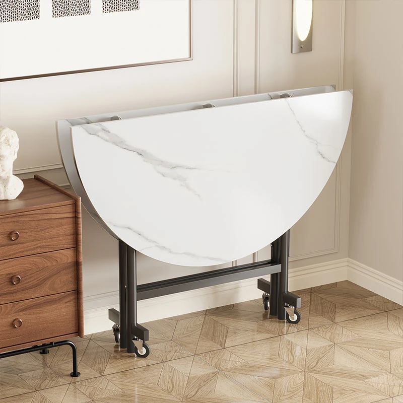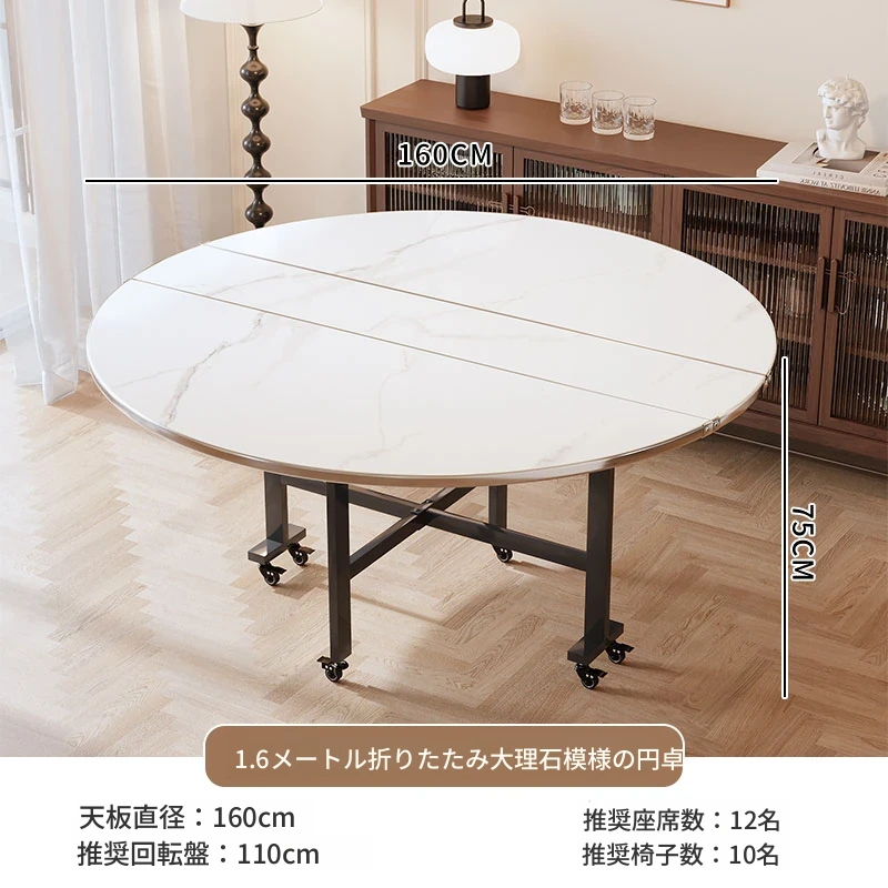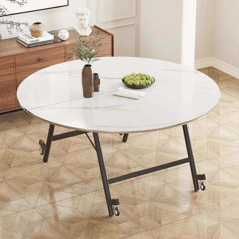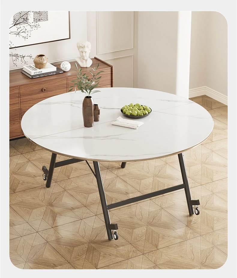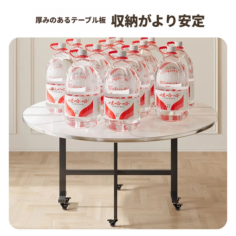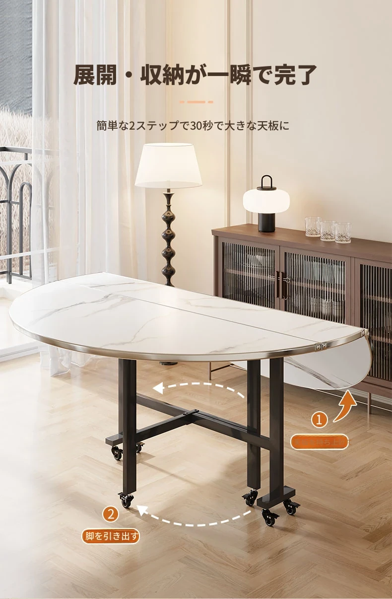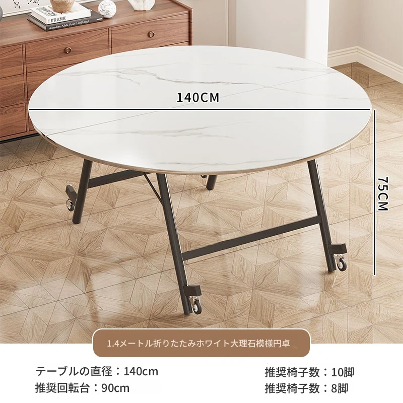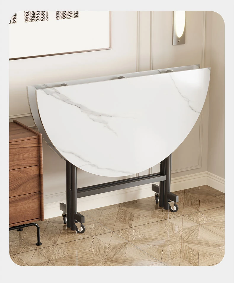 折りたたみ式円形テーブル|省スペース・小型家庭向け|ステンレスエッジ付き・移動可能な折りたたみダイニングテーブル|あなたの生活空間をもっと快適に!