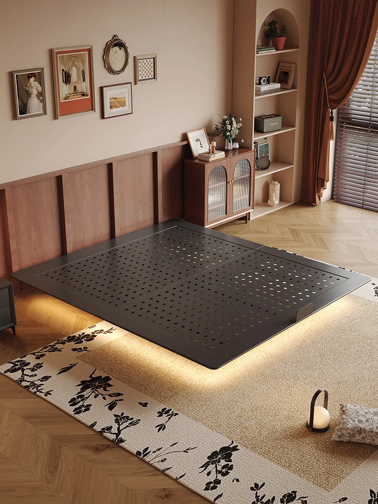 レトロ風ビッグブラックベア浮遊ベッド2025年新作!モダンでシンプルな主寝室にぴったりな高級感あふれるダブルベッド。洗練されたデザインで、居心地の良い空間を演出します。