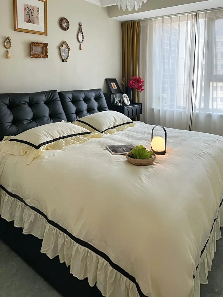 Elegant Black Cloud Leather Bed - Vintage Style 2x2m King Size Italian Minimalist Storage Bed for Modern Living Spaces